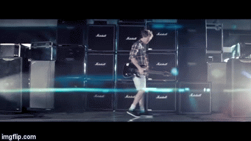 The music begins again and as the band jumps it cuts to them landing back inside of the stage with the crowd around them. A long shot of the band is so the location is clear again. The editing process of the cuts are fast again to the beat. The lyric "like my air guitar" one of the members guitar disappears the re-apperas to the beat. This is shown in a mid shot of them alone standing in front of speakers. While the song is coming to an end each of the members have a mid shot on their own which is at a high angle tracking around them. The ending of the music video is the crowd coming closer to the stage. with then cuts to one of the members alone in front of the speakers about the smash his guitar on the floor then when the lyric " air guitar" is said the guitar disappears and a white glass is adding into the editing process. A jump cut to him alone on the stage once the music has stopped then a white flash then a blank screen to symbols that the music video is ended.
